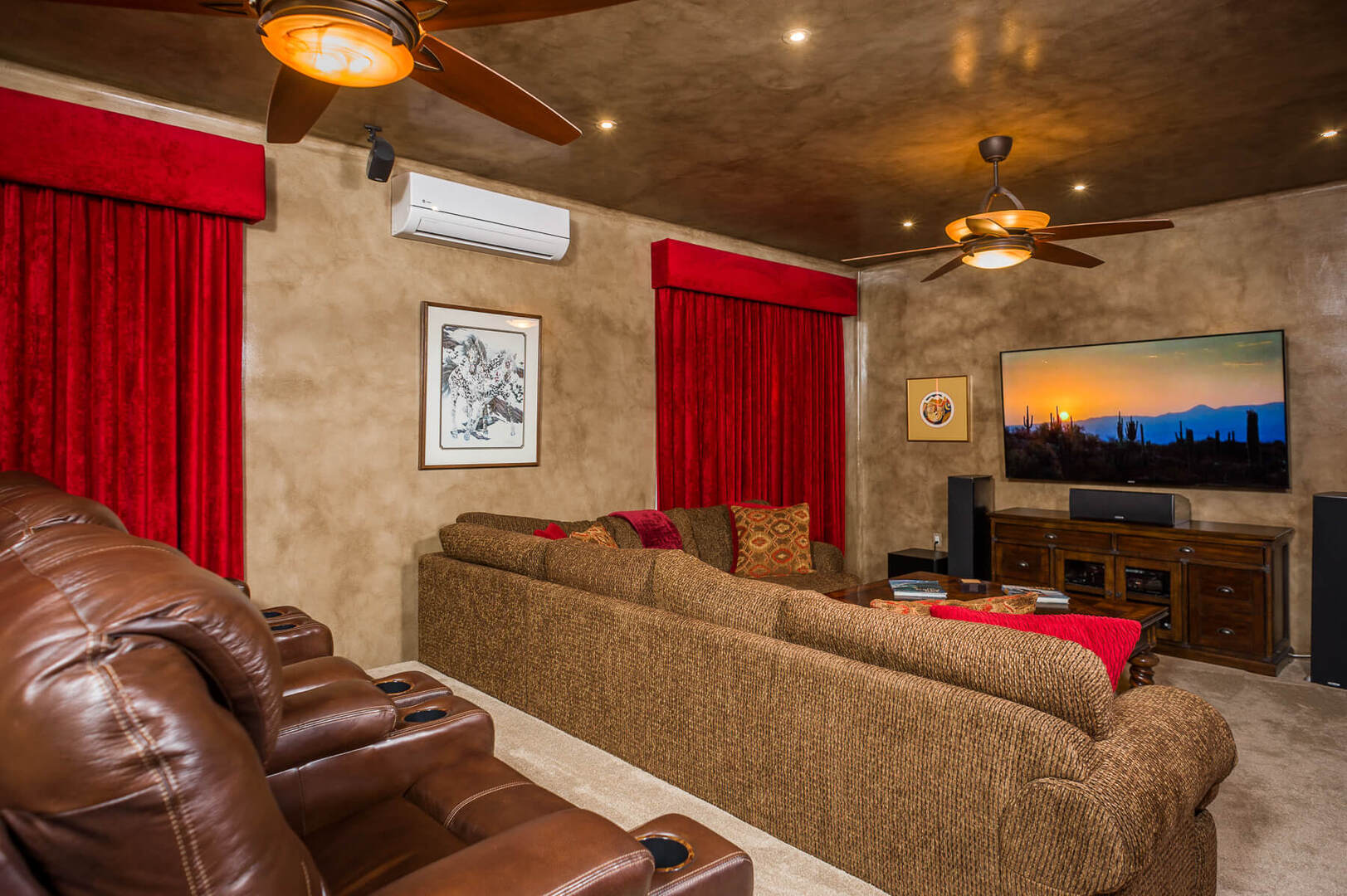All bedrooms are expertly-decorated and have stunning ensuite bathrooms. With plush cushions and lavish linens, Casa Ocho Chiquita’s bedrooms have also been outfitted with everything you need for a peaceful night’s sleep. The four bedrooms also include panoramic views of the Sea of Cortez. In the theatre room of the villa, you’ll find a sofa bed and an additional ensuite bathroom.