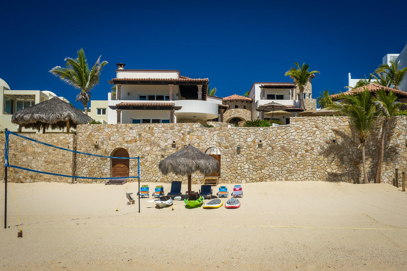 An absolutely stunning beachfront home, Casa Ocho Chiquita is one of the newest editions to the exclusive El Encanto de la Laguna development. Located only 5 minutes from historic San Jose Del Cabo, this villa is perfect for couples looking to entertain in a beachfront location with spectacular ocean views. At approximately 6,000 square feet, this 5-bedroom, 5 and a half bath, luxury villa is the epitome of a Cabo vacation home.