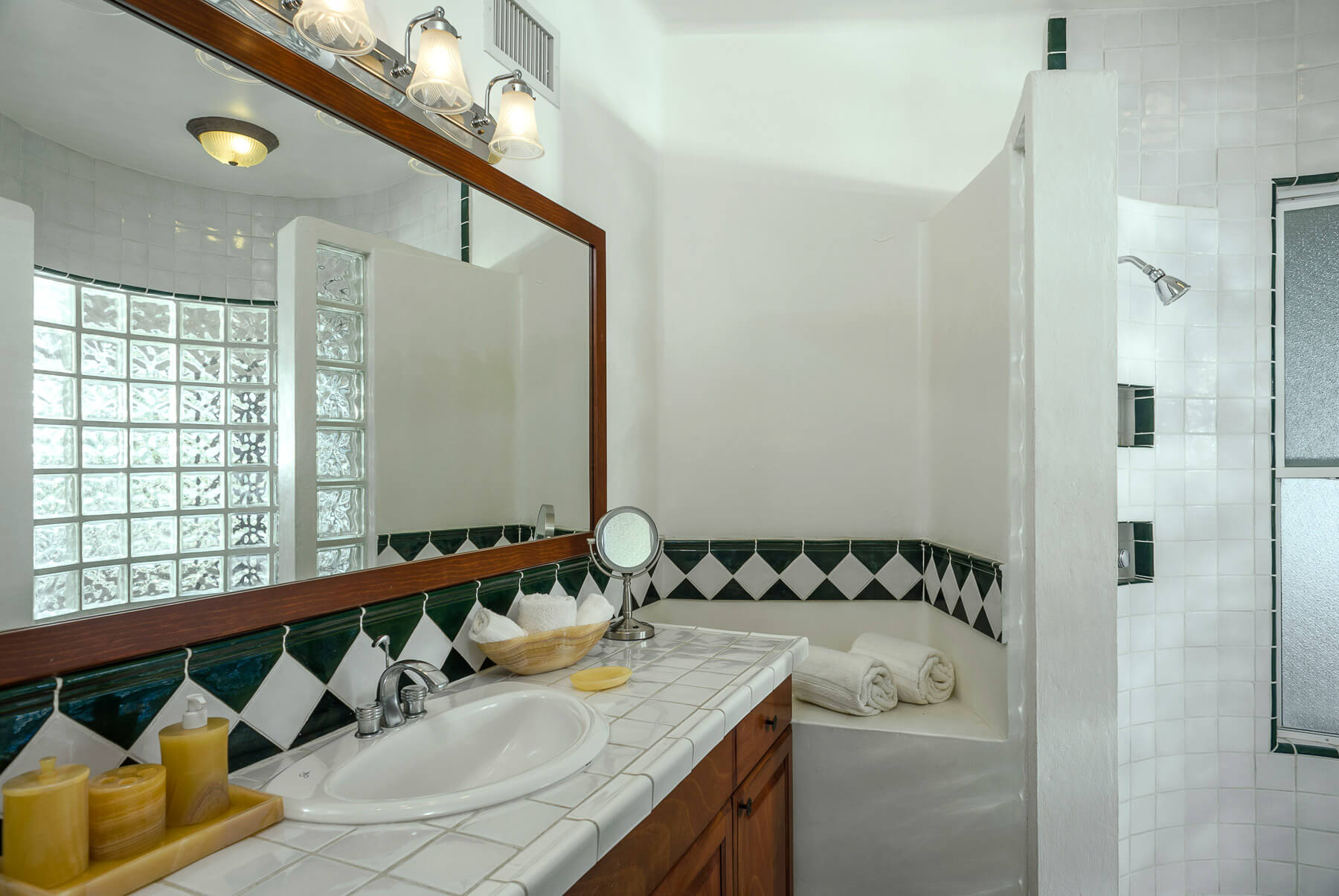 The interior of Villa del Pescador is a seamless fusion of rustic design and modern amenities. The cozy, traditional-style wooden furnishings all around the home are contrasted by technological comforts such as large flatscreen televisions, a kitchen stocked with professional-grade appliances, and in-home wireless internet connectivity.