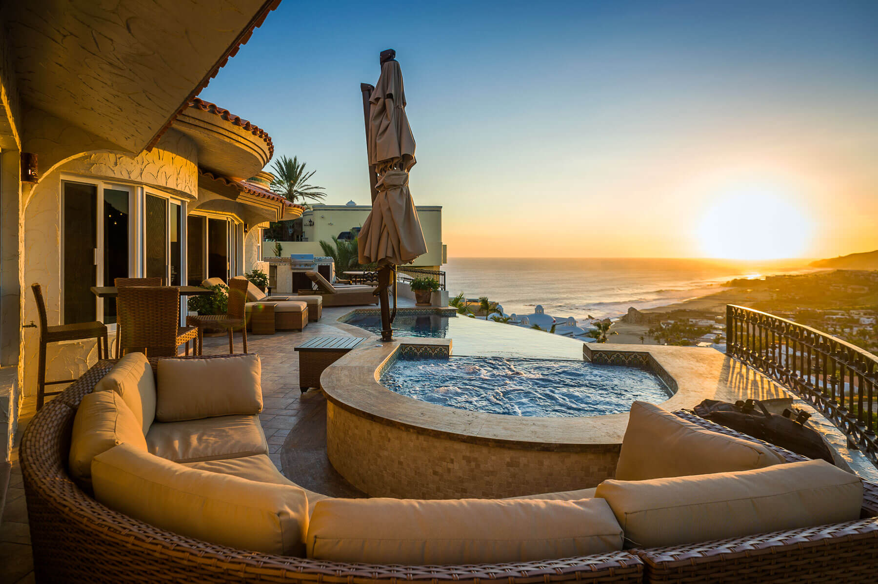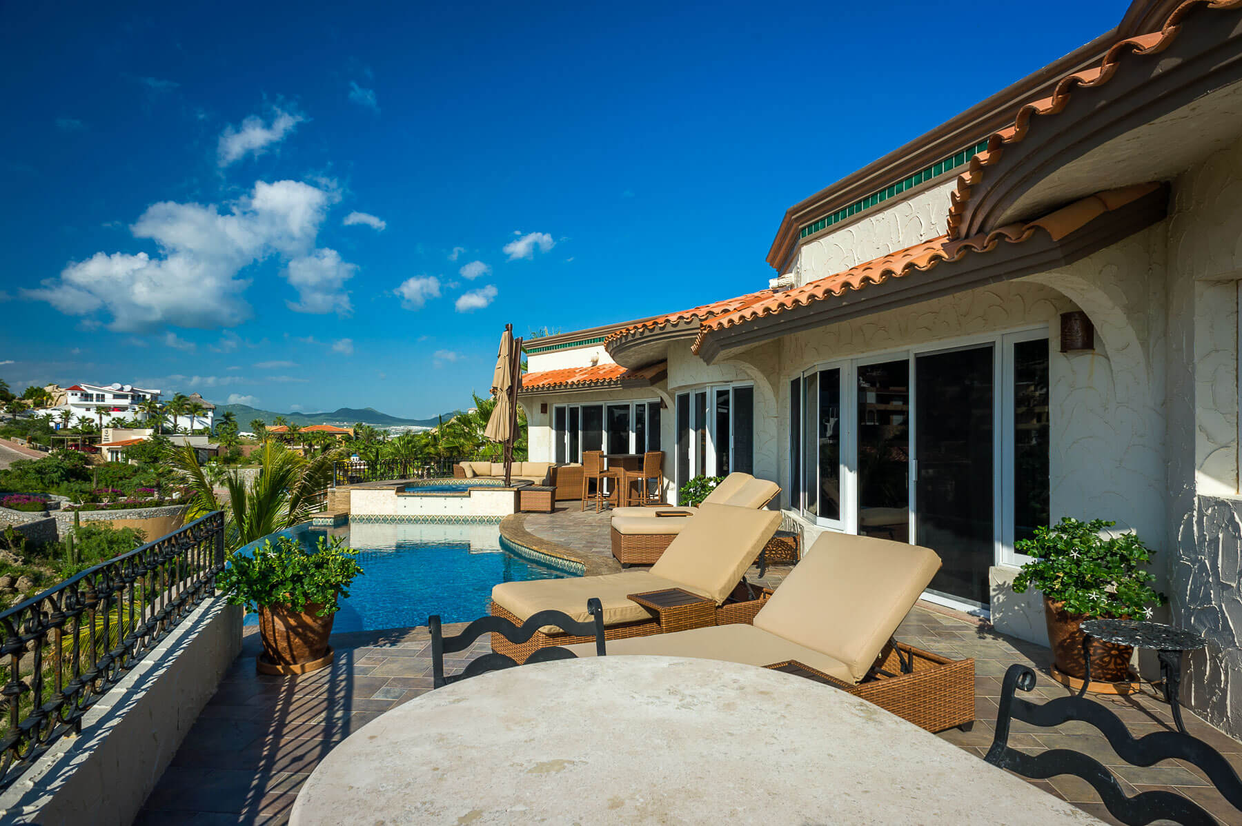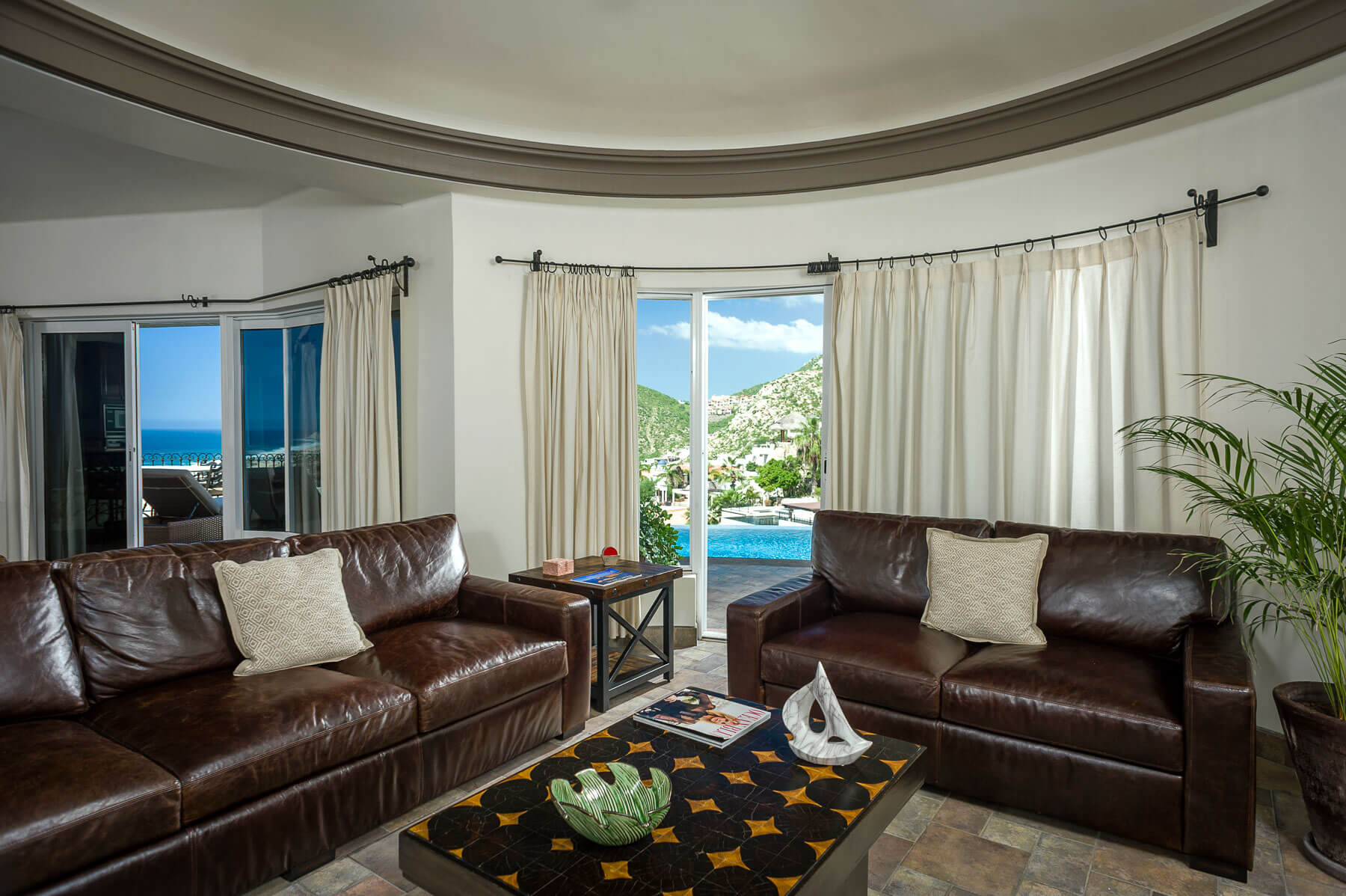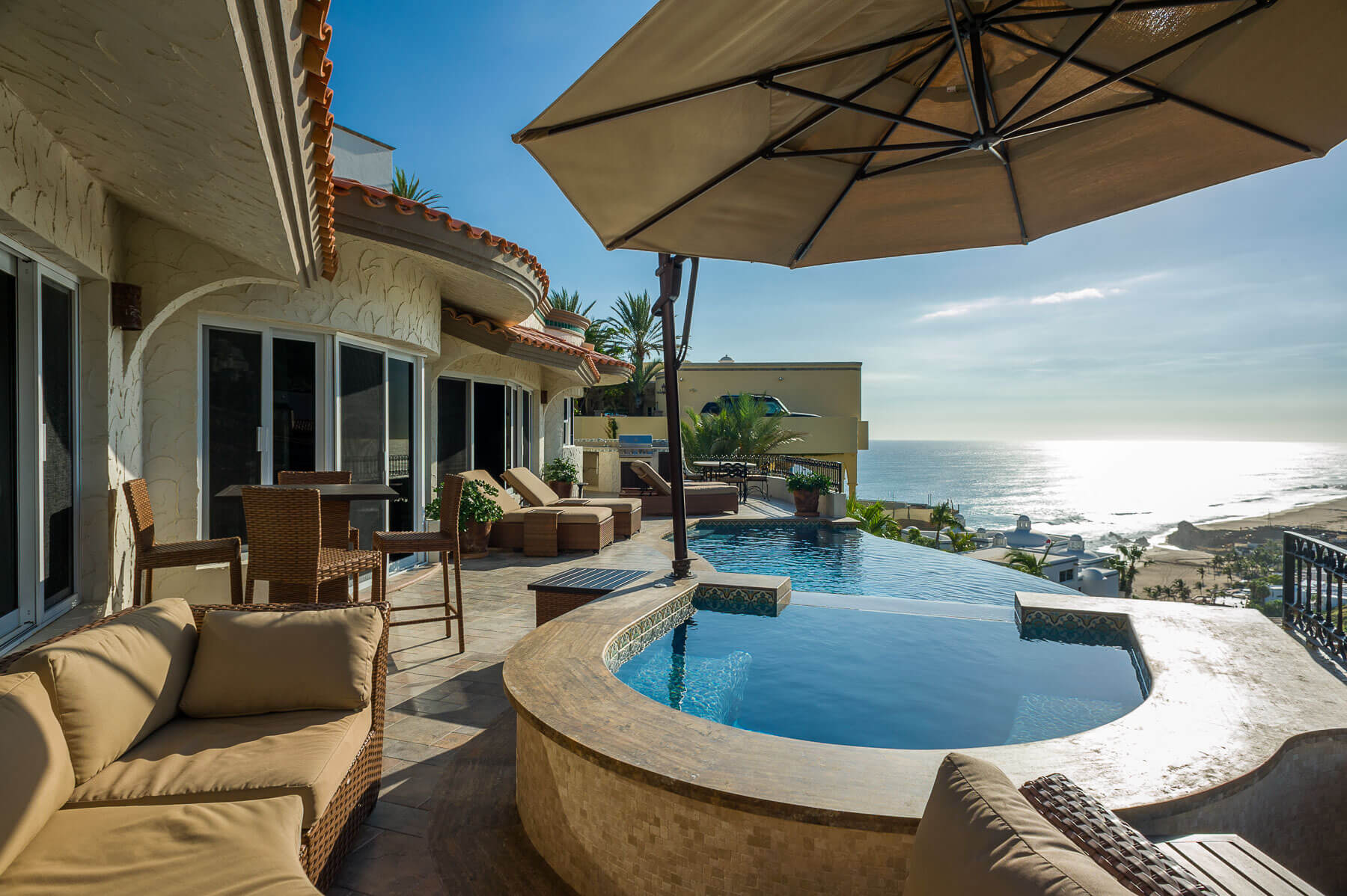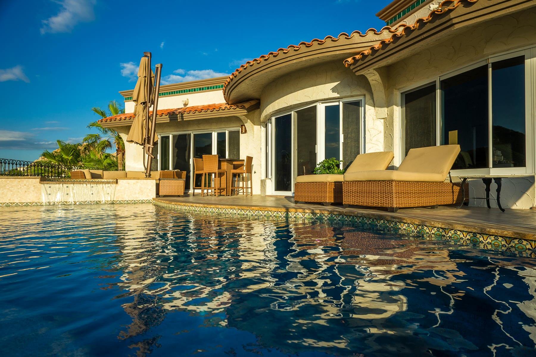 Expect the utmost in pleasure and beautiful scenery when you stay at Villa del Pescador, high up in Cabo’s private community of Pedregal. This luxury vacation home takes full advantage of its elevated positioning and allows you to see for miles along the Sea of Cortez. You will be able to gaze upon the city of Cabo San Lucas below without even having to take a step off the property.